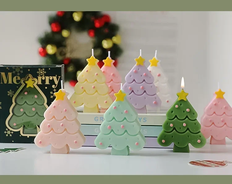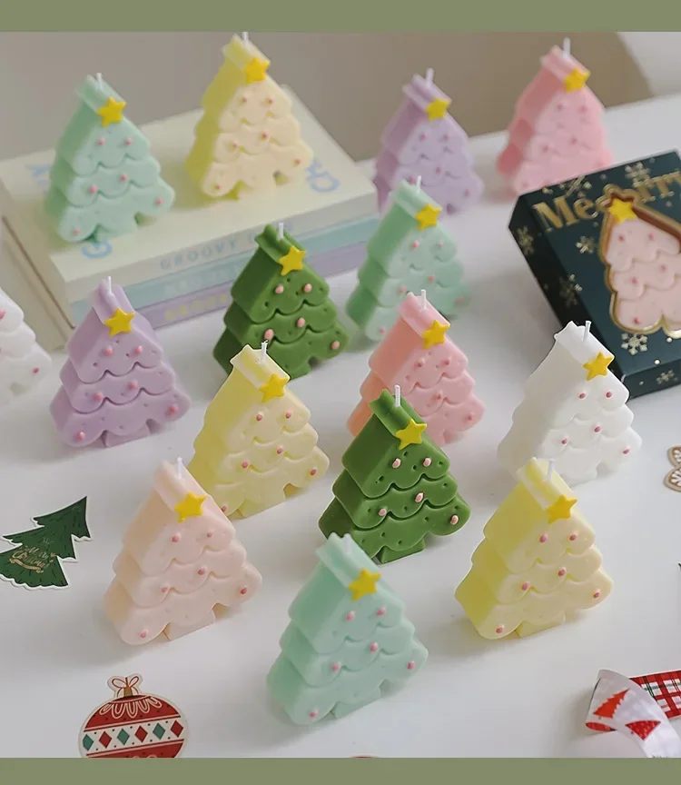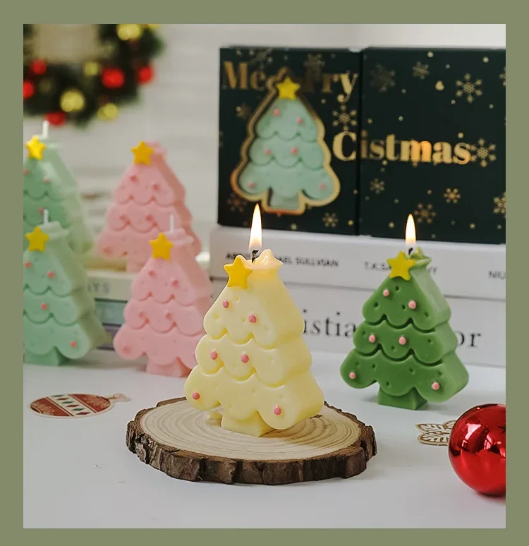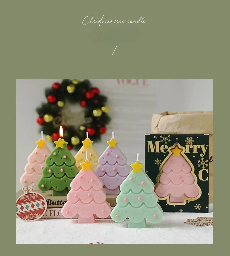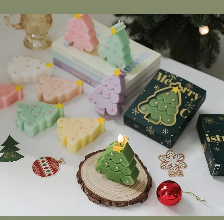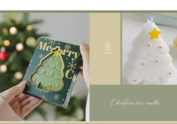 Christmas Scented Candle with Box Mini Christmas Tree Shape Fragrance Candle Home Decor Candle Gift for Friends Women Souvenir
